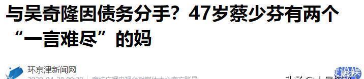 环京津新闻网:与吴奇隆因债务分手?47岁蔡少芬有两个“一言难尽”的妈